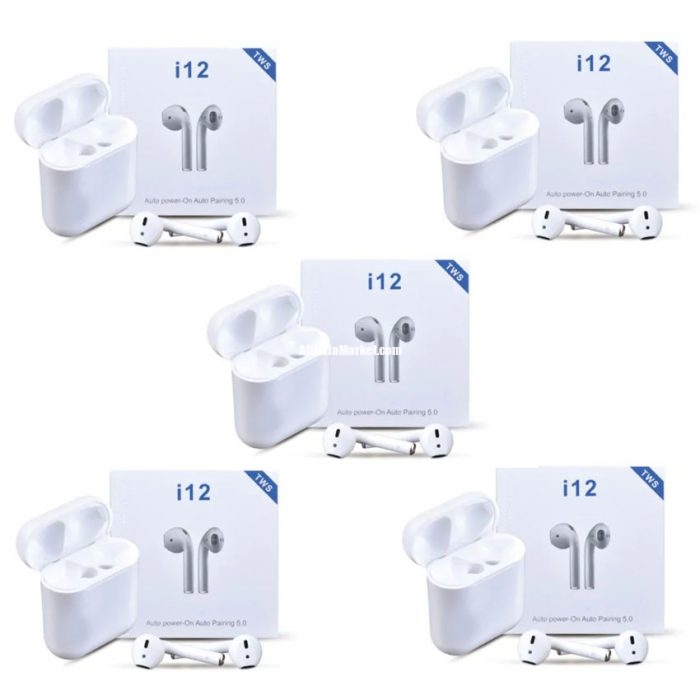 پنج عدد هندزفری و هدفون بیسیم مدل i12 – TWS (آکبندتست نشده-بدون مرجوعی)