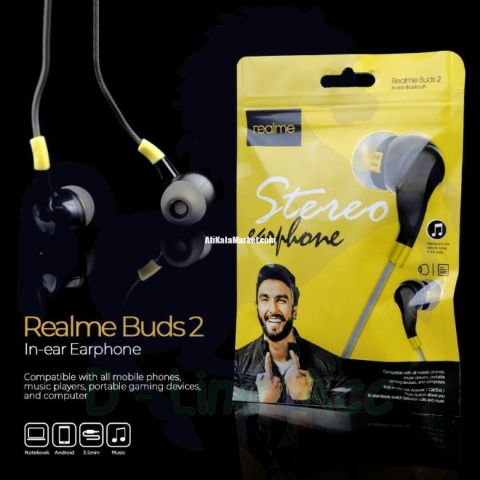 هندزفری realme Buds 2 مدل RMA 101 از نوع سیم دار و استریو با دو سرگوش لاستیکی و inear با قطر درایورهای 11 میلیمتری با توان خروجی 3 میلی وات با قابلیت تولید صدا با خروجی با باس عمیق و قدرتمند و در حین حال دقیق را برای شما به ارمغان میاورد.