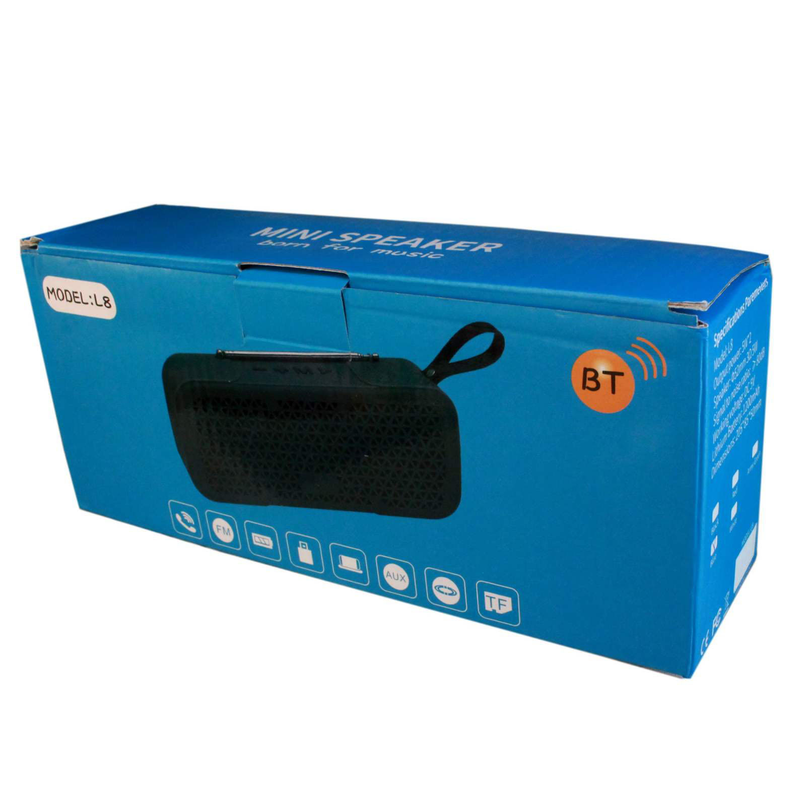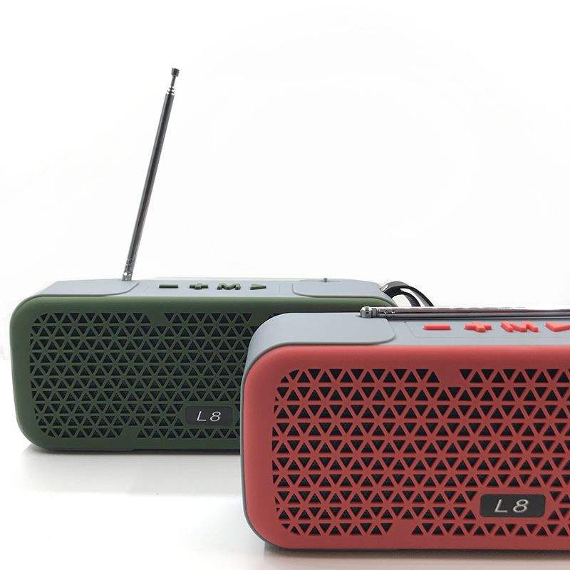 اسپیکر «L8» یک اسپیکر قابلحمل است، که از طریق بلوتوث نسخه 4.0 به گوشی تلفن همراه یا پخشکنندههای دیگر متصل میشود. اما اگر پخشکننده غیر بلوتوثی دارید، جای نگرانی نیست، چراکه این اسپیکر یک پورت Usb و شیار کارت حافظه و جک 3.5 میلی متری هم در نظر گرفته است تا از دستگاه های فاقد بلوتوث هم متصل شوید. انرژی مورد نیاز این محصول از طریق باتری داخلی قابل شارژ آن تامین میشود. این باتری دارای ظرفیت 1200 میلیآمپری است که قابلیت پخش مداوم 2-4 ساعت موسیقی را دارا است. این اسپیکر قادر است تا مسافت 10 متر را پشتیبانی کند و صدایی شفاف و باکیفیت را ارائه دهد. پس اگر به دنبال یک اسپیکر کوچک و قابلحمل هستید که صدایی شفاف و باکیفیت ارائه دهد، L8 یکی از بهترین گزینههای پیش روی شما است. این بلندگو وزن و ابعاد بسیار مناسبی دارد و بهآسانی میتوانید از صدای قدرتمند آن لذت ببرید. در نهایت میتوان این اسپیکر را مناسب افرادی که در هر شرایطی علاقه به شنیدن موسیقی با صدای خوب دارند، دانست.