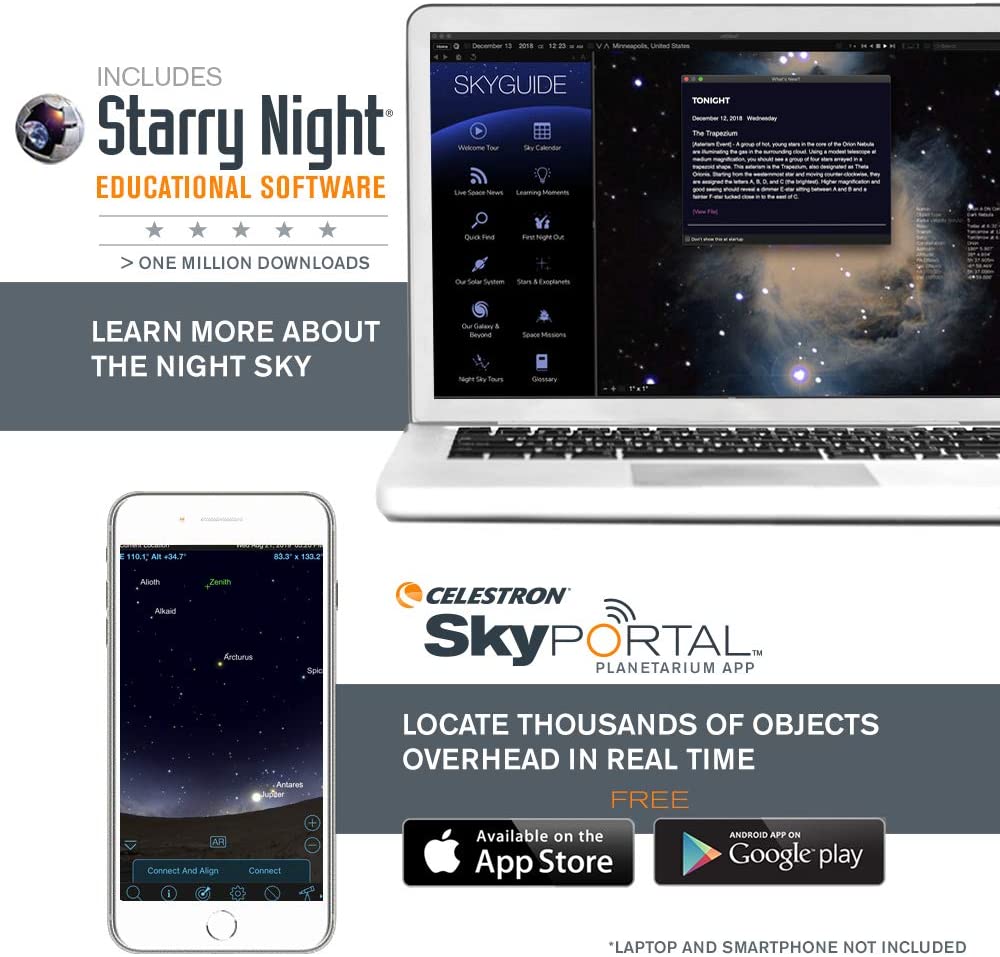چشمی های قدرتمند برای مشاهده از نزدیک: این تلسکوپ برای مبتدیان نجوم مجهز به دو چشمی با کیفیت بالا (20 میلی متر و 10 میلی متر) است که نمایی کم و زیاد از اجرام آسمانی در شب و اجسام زمینی در طول روز ارائه می دهد.