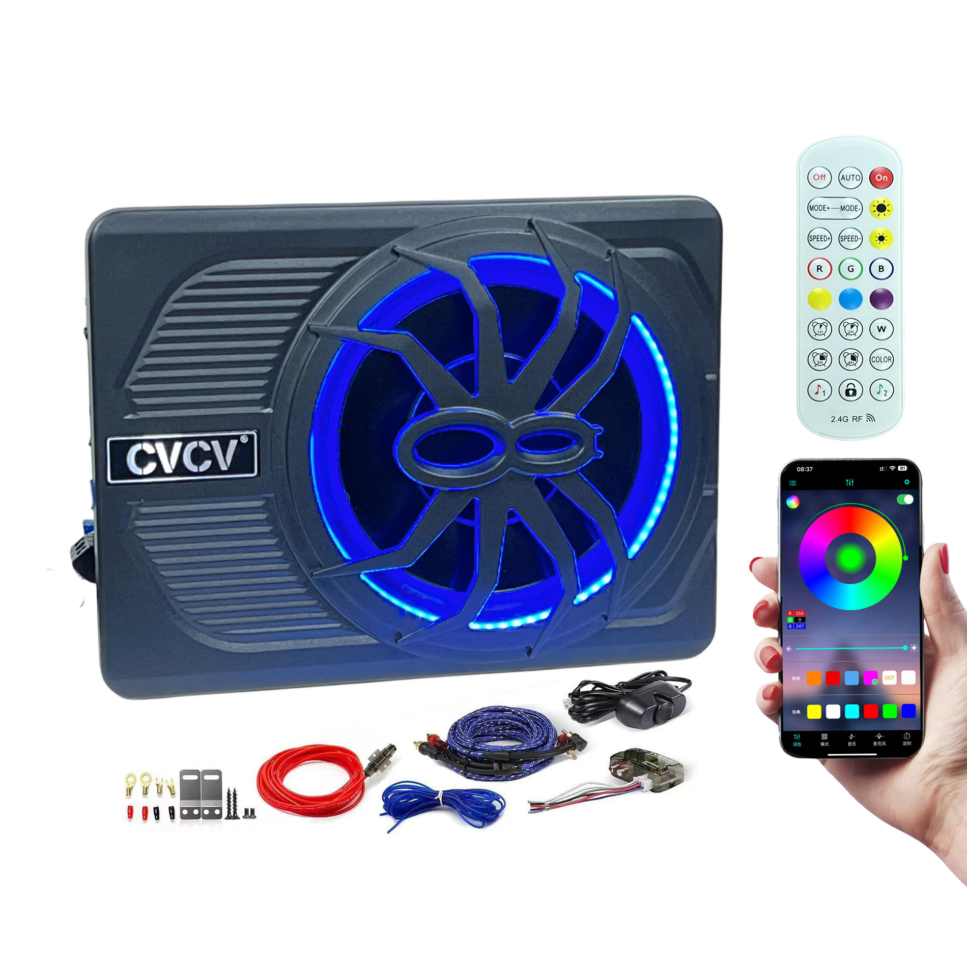 ساب اکتیو زیر صندلی 10 اینچ 800 وات همراه ریموت، اپلیکیشن، کابل و مبدل